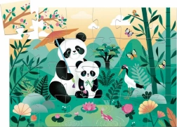 Gyönyörű puzzle panda motívummal, amely lenyűgözi a gyerekeket és felnőtteket. A kirakott kép mérete 42 x 30 cm.