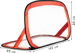 Az oldalsó ujjak a merevítő rudak számára megerősítik a vázat, míg a strapabíró háló megbízhatóan felfogja a pontos lövéseket. A kapuk könnyűek, helytakarékosak és egyszerűen szállíthatók, ezért tökéletesek kerti focihoz, edzéshez és barátságos meccsekhez.