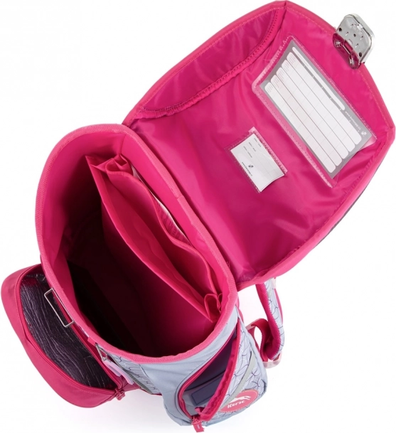 A fő rekesz elég tágas az 1–2. osztály összes tanszeréhez, az elülső zseb ideális uzsonnának. A masszív alj védi a tartalmat és növeli a stabilitást a felborulással szemben. A biztonsági csat megkönnyíti a nyitást-zárást, a fényvisszaverő elemek pedig növelik a gyermek láthatóságát szürkületben és sötétben is.