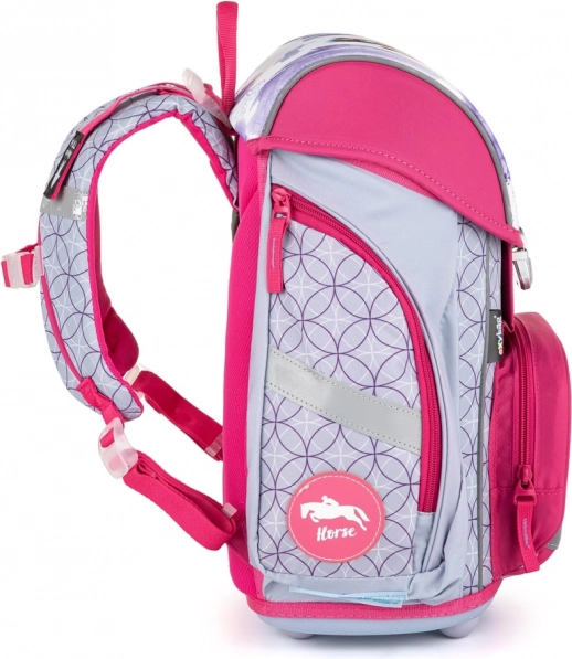 Ez a Prémium sorozatú iskolatáska a népszerű ló mintával a kis iskolások maximális kényelmére és helyes testtartására lett tervezve. Az anatómiailag formázott hát belső merevítéssel tartósan őrzi formáját, és a légáteresztő párnázással és a széles, párnázott pántokkal együtt kényelmes, egyenletes teherelosztást biztosít.