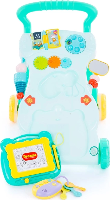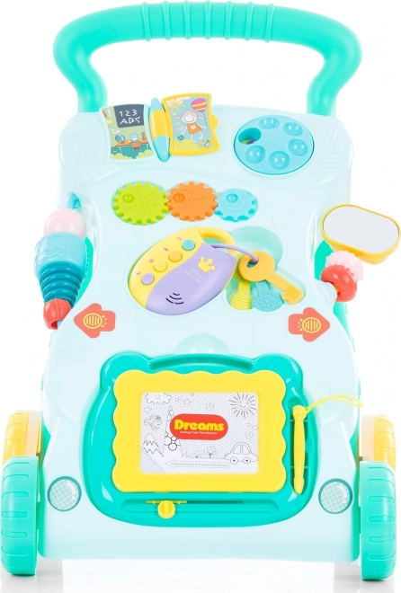 A CHIPOLINO Funny járássegítőt 6 hónapos kortól, már önállóan járni tudó gyermekek számára tervezték. Változatos tevékenységeket kínál – a rajzolástól a nyomógombokon át a fogaskerekekig – így fejleszti a finommotorikát és a fantáziát. A fényhatások, a melódiák és a különféle hangok hosszabb időre lekötik a totyogók figyelmét.