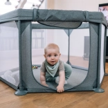 - Légáteresztő és átlátszó oldalfalak – lehetővé teszik a gyermek megfigyelését