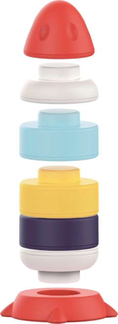 A piros gomb egyetlen megnyomására vidám dallamok és fényjáték indul. Két hangerőszint gondoskodik a kellemes játékról bármilyen környezetben.