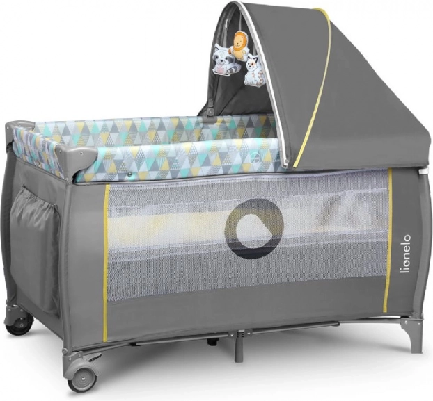 A LIONELO Sven Plus utazóágyat a gyermek és a szülők maximális kényelmére tervezték. A gyors összecsukás és a stabil, éles szélektől mentes konstrukciót tartós, kopásálló, puha betét egészíti ki. A hálós oldalfalaknak köszönhetően a gyermek folyamatosan szem előtt van, és biztosított a jó levegőáramlás.