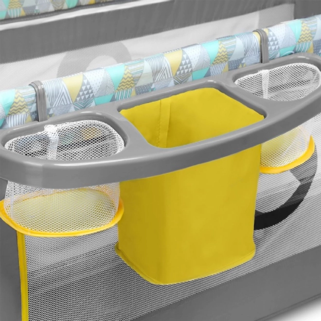 - Pelenkázó feltét, szúnyogháló, oldalsó rendező (3 zseb), melódiás interaktív kutyus, kapaszkodók a felállás gyakorlásához
