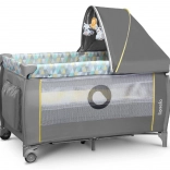 Praktikus utazóágy csecsemőknek és kisgyermekeknek gazdag felszereltséggel a kényelmes alváshoz és a biztonságos játékhoz útközben is. Kínál két matracmagasságot, oldalsó cipzáras bejáratot, szúnyoghálót és fékezhető kerekeket az egyszerű áthelyezéshez. A LockGuard rendszernek köszönhetően védett a véletlen összecsukódás ellen, továbbá pelenkázó feltét, oldalsó rendező és melódiás interaktív kutyus is gondoskodik a szórakozásról.