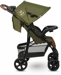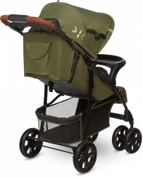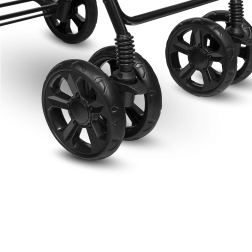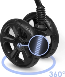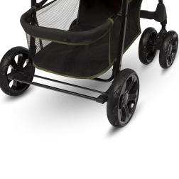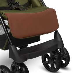 A strapabíró EVA habból készült kerekeknek köszönhetően a babakocsi különböző felületeken is megbízható. A első kerekek puha rugózása csillapítja az ütéseket, a egyenesfutás rögzítésének lehetősége pedig növeli a stabilitást macskakövön. A babakocsi könnyen, kompakt méretre csukható a hordozáshoz vagy a csomagtartóban való tároláshoz.