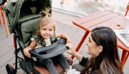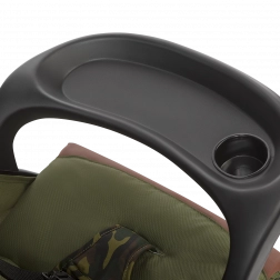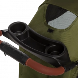 Ötpontos övek puha vállvédőkkel, védőkar tálcával és pohártartóval. A babakocsi SGS laboratóriumban tesztelt és megfelel a szigorú előírásoknak.