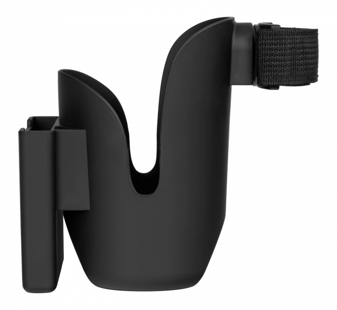 - A tartó univerzális 360°-os rögzítőrendszerrel van ellátva, és stabil tépőzáras pánttal, amely bármilyen babakocsi fogantyújára rögzíthető bármilyen szögben.
