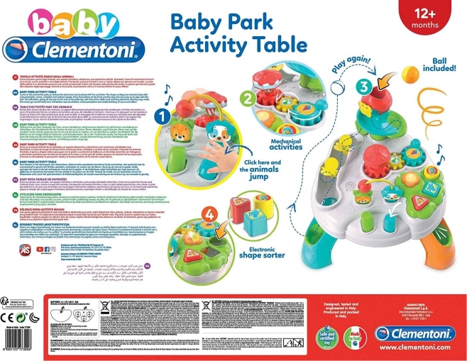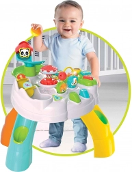 Ezen az asztalon fogaskerekek találhatók, amelyek a körhintát forgatják, gombok, amelyek életre keltik a figurákat, valamint egy szórakoztató golyópálya csúszdákkal, amely az asztal lábainál ér véget. Ez az asztal nemcsak szórakoztat, hanem a gyermekek fontos készségeinek fejlesztésében is segít.