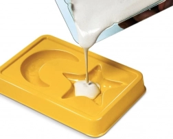 - kesztyű, festék, műanyag tálca