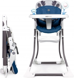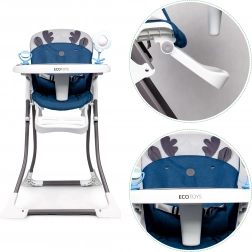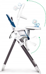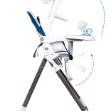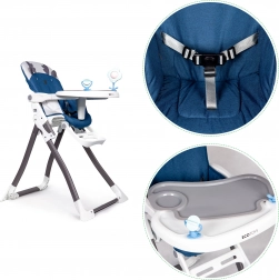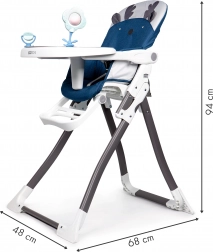 A modern kialakítású etetőszék 6–36 hónapos gyermekek számára alkalmas. Az ülés formázott, és biztosítja a gyermek helyes testtartását. A huzat szükség esetén könnyen eltávolítható és 30 fokon mosható. Előnyök: - egyszerű összecsukási rendszer - 3 pontos biztonsági öv - levehető, dupla tálca - állítható lábtartó - csúszásgátló védelem a gyermek számára - stabil szerkezet - maximális teherbírás 15 kg Méretek: az összecsukott szék 94 × 68 × 48 cm.