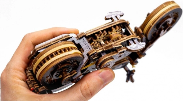 A kidolgozott mechanikus elemek, mint a gumimotorok és a fogaskerekek, felejthetetlen szerelési élményt nyújtanak. A lendkerék mechanizmusnak köszönhetően a modell akár 1 métert is meg tud tenni. A Cruiser V-Twin ideális ajándék minden motorrajongónak.