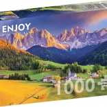 Élvezze a nyugodt kirakózást az ENJOY puzzle-lel, amely a Dolomitokban álló templomot ábrázolja. A lenyűgöző táj és a történelmi építészet részleteinek kombinációja kellemes kihívást kínál, és jutalomként egy kb. 68 × 48 cm-es dekoratív képet ad.