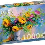 Élvezze a pihenést a minőségi ENJOY puzzléval, sárga virágokból álló csokor motívummal. A csomag 1000 darabot tartalmaz, és az összeállítás után kb. 68 × 48 cm méretű kép készül, amely ideális keretezéshez. Remek választás kikapcsolódáshoz, a koncentráció fejlesztéséhez és a befejezés öröméhez.