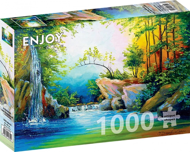 Fedezze fel a természet varázsát az ENJOY „Az erdőben a vízesésnél” kirakóval. Az ezer gondosan kivágott darab harmonikus képet alkot, amely örömet szerez tapasztalt kirakózóknak és lelkes kezdőknek egyaránt. Ideális nyugodt estékhez és közös családi pillanatokhoz.