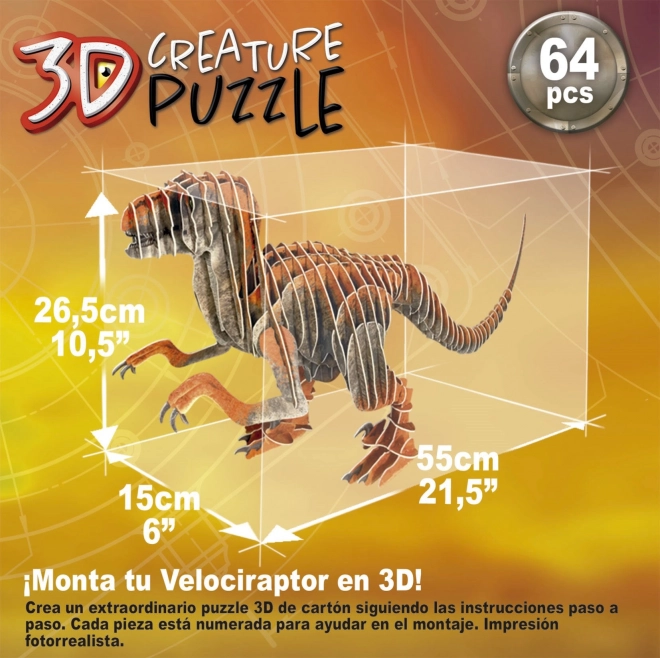Okos szórakozás kicsiknek és nagyoknak. A 3D velociraptor puzzle-t a számozott elemek és nyilak szerint lehet lépésről lépésre összerakni, így kezdőknek is ideális. Az elemek könnyen kinyomhatók a kartonlapokból és szorosan illeszkednek egymásba – ragasztó vagy olló használata nélkül.