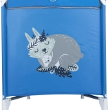 A csomag része a puha matrac a kényelmes fekvéshez és a szállítótáska, amely megóvja az ágyat és megkönnyíti a szállítást. A nyuszis motívummal díszített kék kivitel játékos, mégis ízlésesen illeszkedik bármely enteriőrbe.