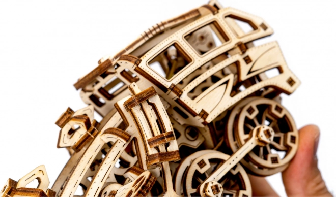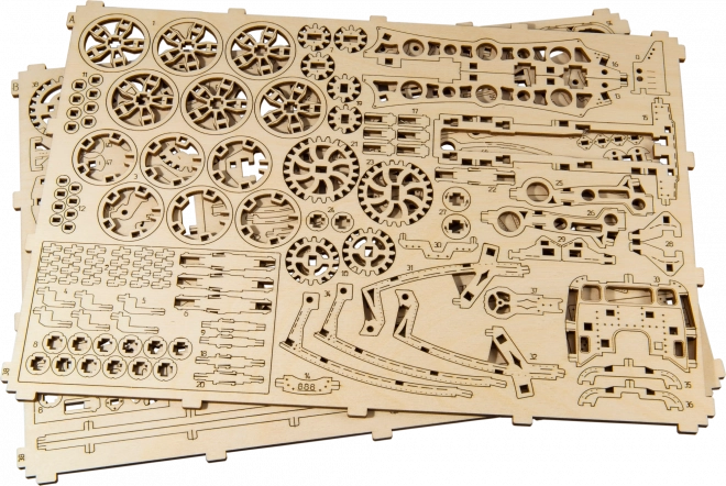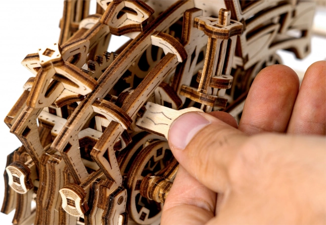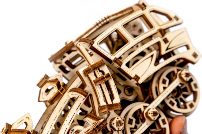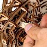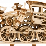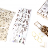Az Álmok expressze fa modell ideális ajándék a sínvilág rajongóinak és a mechanikus fejtörők kedvelőinek. Ez a 3D puzzle úgy készült, hogy órákon át szórakoztasson és a mechanika alapjait is tanítsa. Az összeszerelés ragasztó és szerszámok használata nélkül történik, a modell pedig környezetbarát anyagokból, konkrétan minőségi nyír rétegelt lemezből készül. Összeállítás után teljes mértékben élvezheti a mechanikus funkciókat, amelyeket a gumimotor hajt.