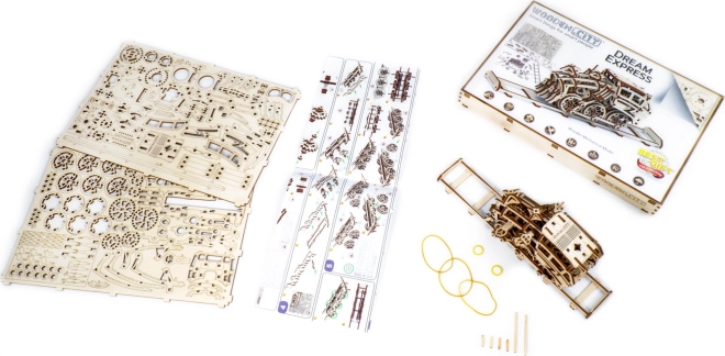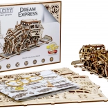 Az Álmok expressze modell hajtott kerekekkel rendelkezik, és képes előre, hátra és körbe mozogni. Teljes felhúzás mellett akár 3 méteres távolságot is megtesz. Remek módja annak, hogy gyermekek és felnőttek megismerkedjenek a mechanika elveivel és gyakorolják a kézügyességet az építés során. A csomag részét képezi egy képes útmutató, amely megkönnyíti az összeszerelést.