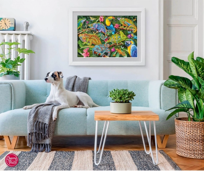 Ez a gyönyörű puzzle kaméleon mintával ideális a kirakós és a természet szerelmeseinek. A 2000 darab kihívást nyújt a tapasztalt kirakós építőknek. A kész kirakós mérete 100 x 70 cm, ami elég nagy formátum ahhoz, hogy a minta minden részlete kiemelkedjen. Merülj el a kaméleonok világában, és élvezd az órákon át tartó szórakozást és relaxációt családoddal vagy barátaiddal.