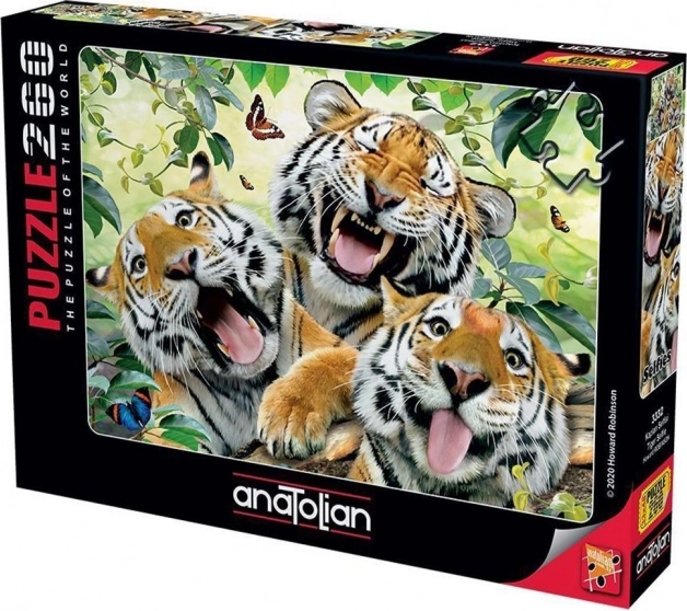 Ez a csodálatos Anatolian puzzle hatékony módot nyújt a pihenésre és a szabadidő élvezetére. A tigris képe, amely egy komikus szelfi kifejezéssel van megörökítve, nemcsak a gyerekeket, hanem a felnőtteket is elnyeri. Ez egy kiváló módja a koncentráció és a türelem fejlesztésének.