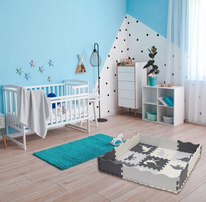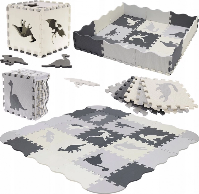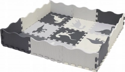 Teremtsen gyermekének biztonságos játszósarkot minőségi, dinoszaurusz mintás habszőnyeggel elegáns szürke árnyalatokban. Az egyes elemek könnyen kirakhatók, mint egy puzzle, ráadásul kivehető formákkal, amelyek támogatják a finommotorikát és a fantáziát.