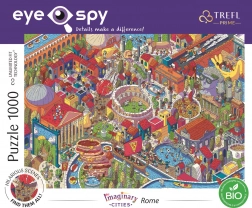Lépjen be az Eye-Spy lenyűgöző világába ezekkel a 1000 darabos puzzlek segítségével, melyeken a Róma témája jelenik meg Képzeletbeli Városok stílusban. Rakjon össze bármilyen mennyiségű puzzle-t egy kollázsba, és fedezze fel a szórakoztató jeleneteket!
