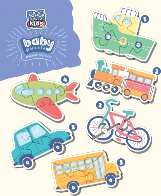 A Baby Puzzle Járművek az ART-tól ideális a gyermekek kognitív képességeinek és finommotoros készségeinek fejlesztésére. Az könnyen tisztítható felületnek és a 2,5 mm vastag kartonnak köszönhetően ez a játék biztonságos és szórakoztató elfoglaltságot nyújt.