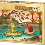 Ez a minőségi fa puzzle egyszerre nyújt szórakozást és fejleszti a finommotorikát. A rugalmas afrikai fának köszönhetően a darabok tartósak, kellemes tapintásúak és tökéletesen illeszkednek egymáshoz. A Tavi barátok motívum a természet és az állatok rajongóinak külön öröm.