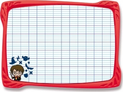 Praktikus, törölhető A4-es tábla HARRY POTTER mintával, ideális jegyzeteléshez, rajzoláshoz és gyakorláshoz. Kétoldalas felület – az egyik oldala nyomott, a másik üres – és filccel, törlővel és tartóval kerül szállításra, könnyű használatra otthon és az iskolában.
