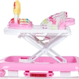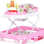 A három magassági szintnek köszönhetően könnyen a gyermek aktuális testmagasságához igazítható. Az első kerekek 360°-ban forognak, így a kicsi minden irányba egyenletesen tud mozogni. Praktikus a gyors összecsukás, valamint hogy a panel lecsatolható és önálló játékként is használható.