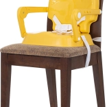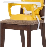 A szék strapabíró kialakítású, csúszásgátló lábvégekkel, praktikus fogantyúval a könnyű hordozáshoz, valamint mosható anyagokkal a gyors karbantartásért. Az ülésmagasító a hevederek segítségével biztonságosan rögzíthető egy hagyományos étkezőszékhez.