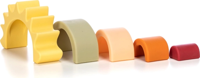 Az öt íves elem összeillesztése erősíti a fogást, a szem–kéz koordinációt és a gyermek első építőkészségeit.