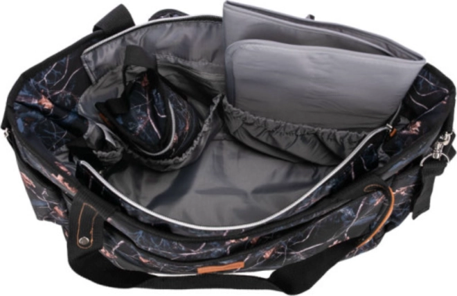 A táska belseje és külseje egyaránt bőséges zsebkiosztást kínál az átlátható rendszerezéshez, valamint a cumisüveg, pelenkák, törlőkendők és apróságok biztonságos tárolásához. A csomag része a cumisüveghez való termo tok és a puha pelenkázólap, így gyermekét bárhol kényelmesen át tudja pelenkázni.