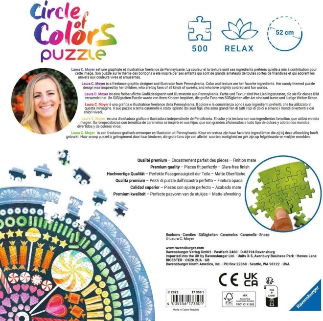 Kirakás közben felfedezheti a részletesen kidolgozott dizájnt és a magas minőségű anyagokat, amelyek nemcsak élvezetessé, hanem műalkotássá is teszik ezt a puzzle-t. Ideális egyaránt az egyedüli relaxációhoz és a szórakoztató közös pillanatokhoz barátokkal és családdal. Vigyen színt és kreativitást a gyűjteményébe a Ravensburger Színek köre Édességek puzzle-val.