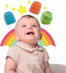 A színes kockák kellemes fogásúak, könnyen egymásba illeszthetők, és támogatják a kéz–szem koordinációt, a koncentrációt és az első logikai kapcsolatok kialakítását.