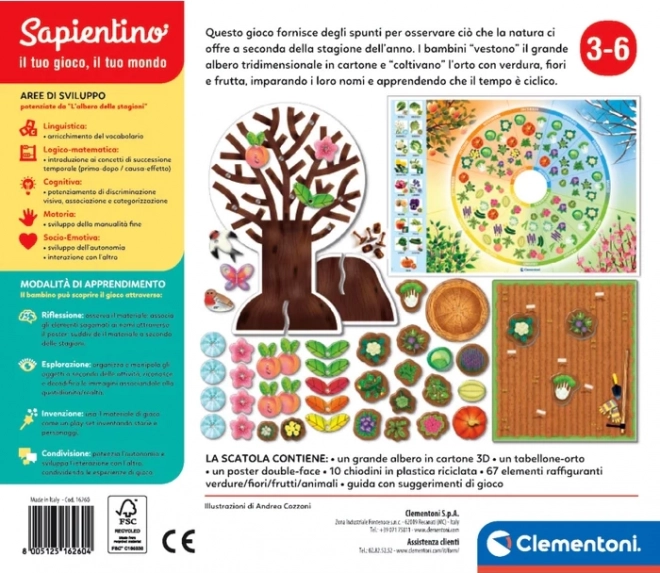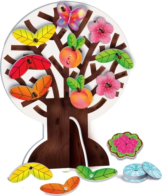 Bemutatjuk a Clementoni oktató játékot - Az évszakok fáját. Ez az egyedülálló játék lehetővé teszi a gyerekek számára, hogy az egyes évszakoknak megfelelően díszítsék a nagy fát, így tanulva a természeti változásokról. Színes jelenetek létrehozása levelekkel, virágokkal vagy gyümölcsökkel nemcsak szórakoztató, hanem oktató jellegű is.