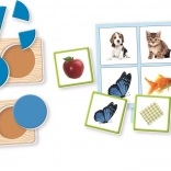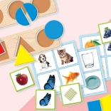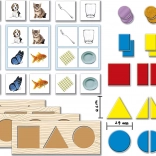 - Színek és formák tanulása – vizuális megkülönböztetés, megnevezés és logikus párosítás.