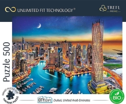 Fedezze fel az okos kirakózást a Trefl UFT Cityscape: Dubaj 500 darabos puzzléval. A Unlimited Fit Technology segítségével több motívumot is összekapcsolhat egy nagy kollázzsá, ahol a határokat ön szabja meg. Legmagasabb minőségű kék karton, egyedi alakú elemek és stabil illeszkedés biztosítja a kész kép könnyű mozgatását. A környezetbarát, biológiailag lebomló csomagolás fólia nélkül örömet szerez mindenkinek, akinek fontos a természet.