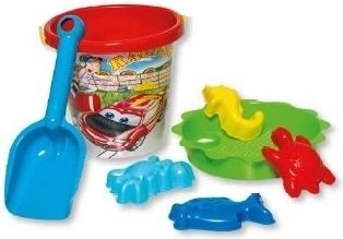Ez a praktikus homokozó készlet mindent kínál, amire a gyerekeknek szükségük van a vízparti és homokozós szórakozáshoz. A könnyű és tartós műanyagnak köszönhetően egyszerűen hordozható, és intenzív játék mellett is hosszú élettartamú. A csomag része egy vödör, szita, lapát és négy forma a legkülönfélébb alakzatok készítéséhez.