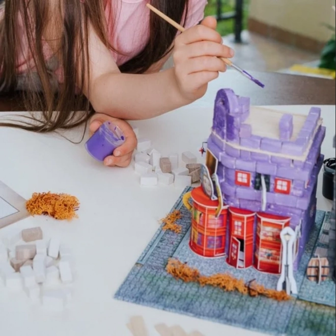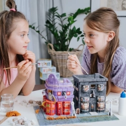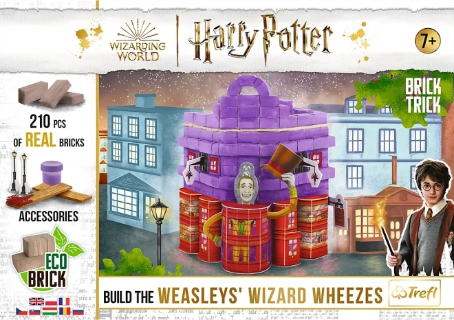 Varázslatos sarkot teremthetsz otthonodban Fred és George színes üzletével. A Brick Trick készlet ötvözi a valódi anyagokat – mini téglákat és fa léceket – olyan dekorációkkal, amelyek karaktert adnak az építménynek. Lépésről lépésre felhúzod az épületet az alapoktól a kész modellig, majd a mellékelt elemekkel díszíted.
