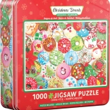 Fedezze fel a EUROGRAPHICS Puzzle Karácsonyi fánkokat 1000 darabbal, egyedi díszdobozban dombornyomással. Ez a puzzle nemcsak vizuálisan lenyűgöző élményt nyújt, hanem praktikus csomagolást is: