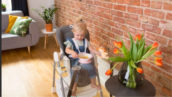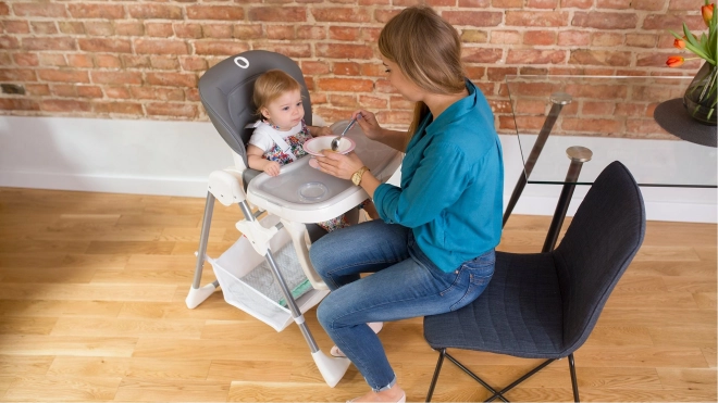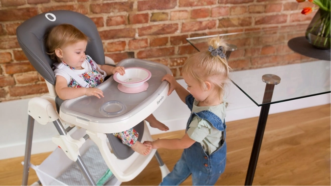 6 ülésmagasság, 3 háttámla-pozíció és 3 fokozatú tálcaállítás biztosít kényelmet az első falatoktól az önálló étkezésig.