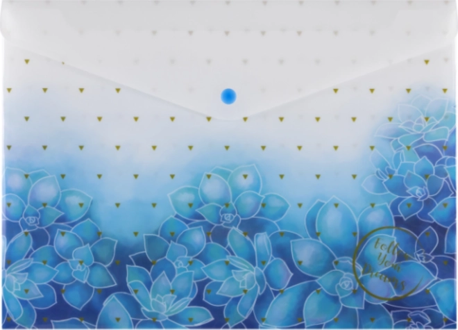 Praktikus A4-es irattartó vonzó mintával és megbízható patentos zárással. Biztonságos dokumentumszállítást és -tárolást kínál, erős, 200 mikron vastag anyagból készül, és vegyes motívumokkal kapható. Ideális iskolába, irodába és utazáshoz.