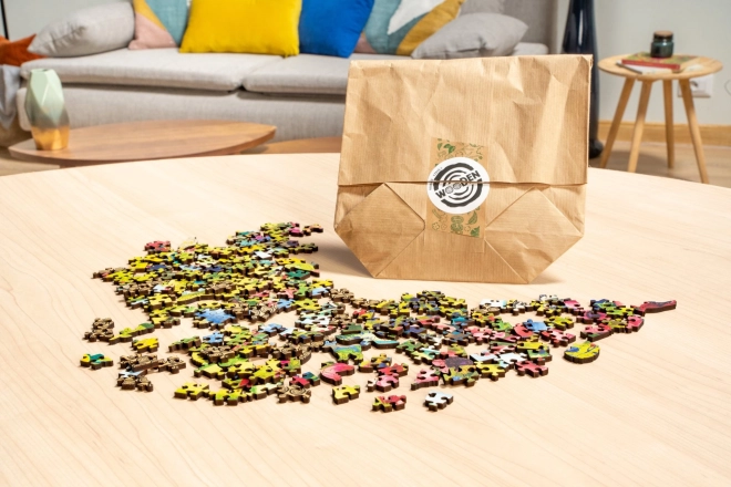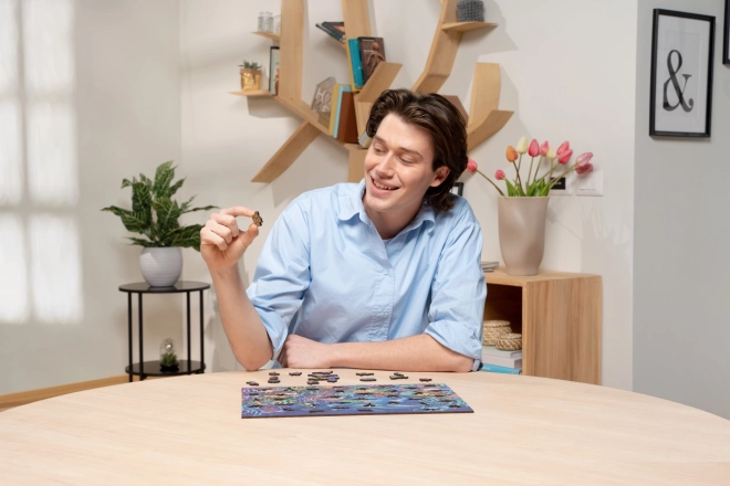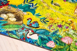 Ez az egyedülálló puzzle fából készül kiváló minőségű színes nyomtatással. Minden darab teljesen egyedi alakú, izgalmas építést biztosítva. Itt találhatók darabok, amelyek az igazi állatokat, virágokat és más tárgyakat idézik a való életből.