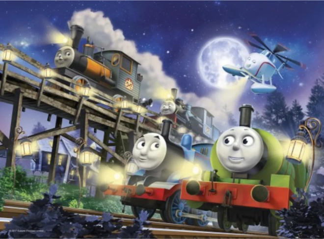 Fedezze fel a vasút varázsát a Világító Thomas a gőzmozdony XL puzzle-lel. Ez a lenyűgöző játék nemcsak a finommotoros és logikai készségeket fejleszti, hanem fénylő hatásával örömet is szerez.