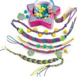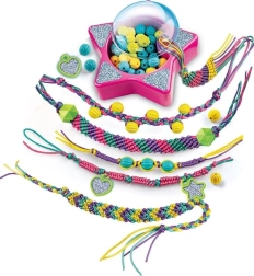 Szett színes barátságkarkötők készítéséhez, amelyek elegánsak és divatosak! A készlet tartalmaz egy speciális eszközt a karkötők fonásához színes cérnákkal és gyöngyökkel. Az alkotásokat sok-sok színes gyönggyel lehet díszíteni! Játékos tevékenység, amelyet barátokkal együtt is lehet végezni, és garantált szórakozást nyújt.