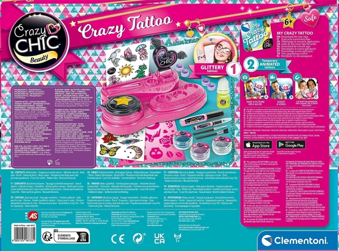 Készíts saját csillámos, sablonos ideiglenes tetoválásokat speciális, világító testfestékkel. A stílusos CRAZY CHIC készlet praktikus munkapadot és kiterjesztett valóság (AR) támogatást kínál a Crazy Tattoo alkalmazásban – a minták varázslatos 3D-ben kelnek életre, amelyeket fotózhatsz, szerkeszthetsz és megoszthatsz a közösségi oldalakon.
