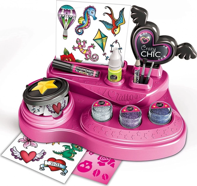 Fedezd fel a kreativitás szórakoztató világát a CRAZY CHIC lányos ideiglenes tetoválás készlettel. A gazdag tartalomnak köszönhetően – öntapadós sablonok, színes csillámok és világító hatású testfesték – minden alkalomra egyedi megjelenést alkothatsz. A praktikus munkapad mindent egyben tart és megkönnyíti az alkalmazást.